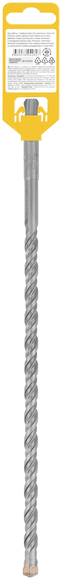 Бур FIT SDS-PLUS диаметром 10 мм и длиной 310 мм — идеальный инструмент для профессиональной работы с бетоном, камнем и кирпичом. Он незаменим для перфораторов, обеспечивая точность и эффективность при сверлении.