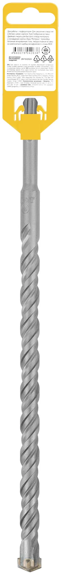 Бур по бетону SDS-PLUS, Профи, крестообразная вставка, двойная спираль, 16 х 310 мм