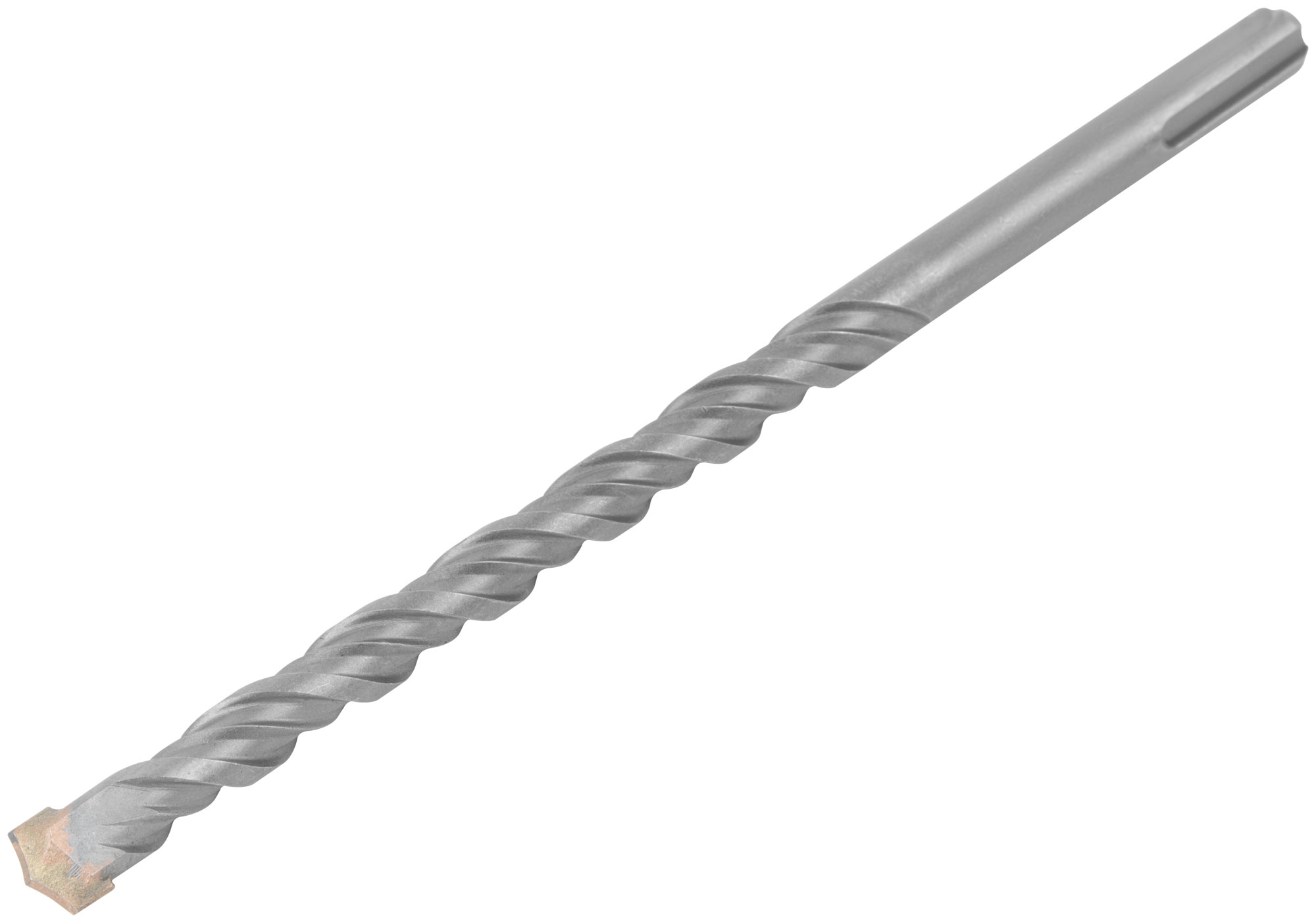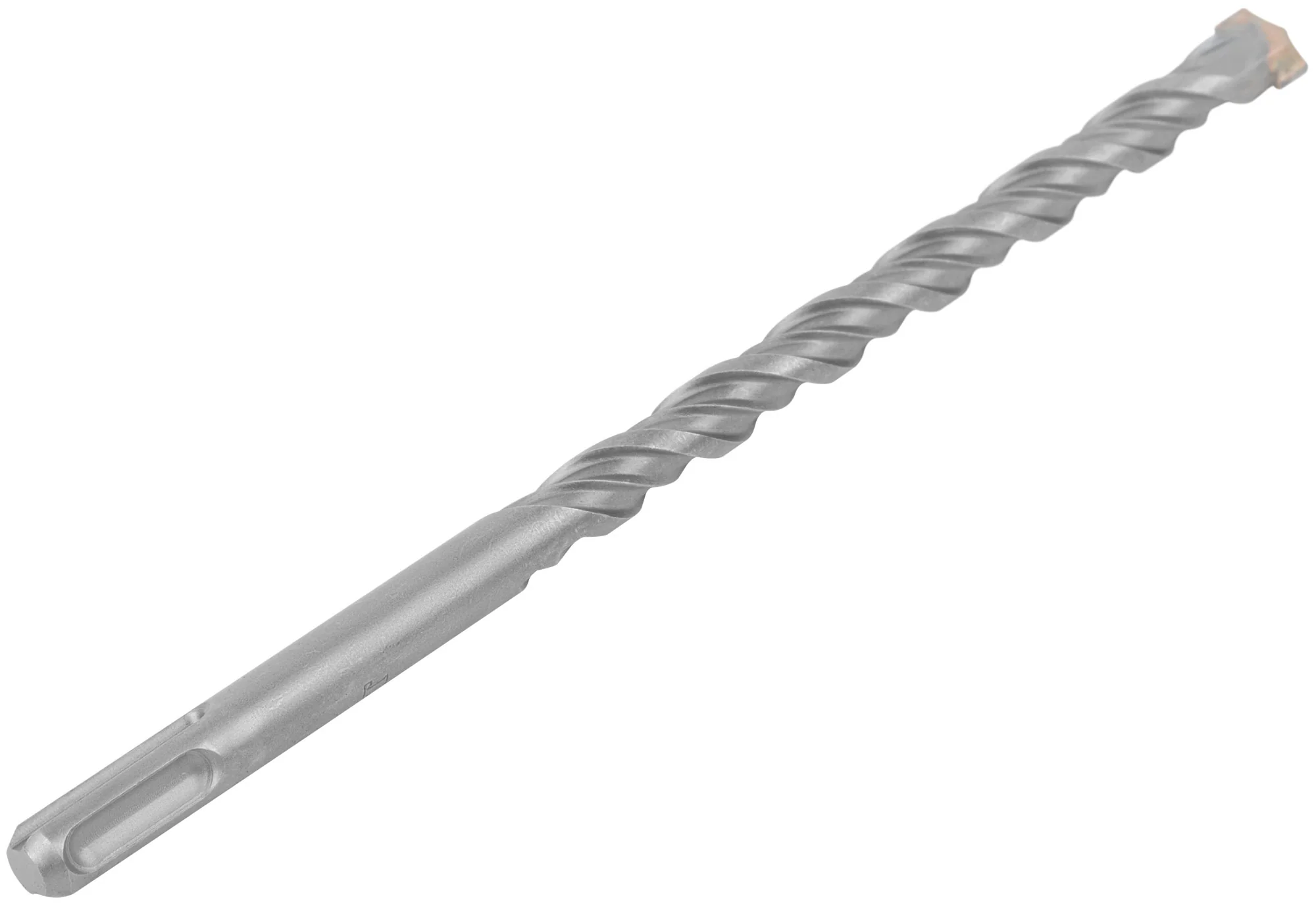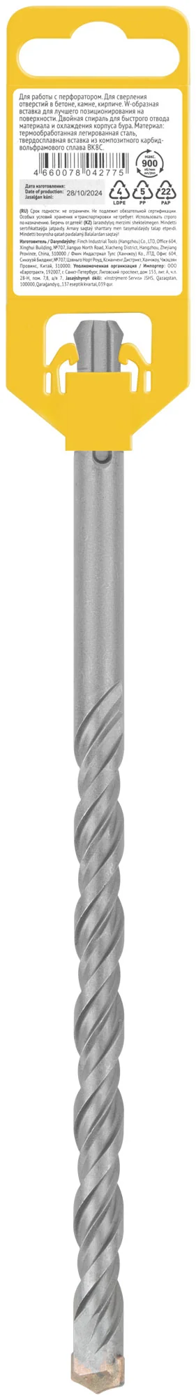 Бур оснащен SDS-PLUS хвостовиком, что обеспечивает надежную фиксацию в инструменте и легкость замены. W-образная вставка с добавлением 8% кобальта улучшает позиционирование на поверхности, а двойная спираль способствует быстрому отводу материала и эффективному охлаждению.