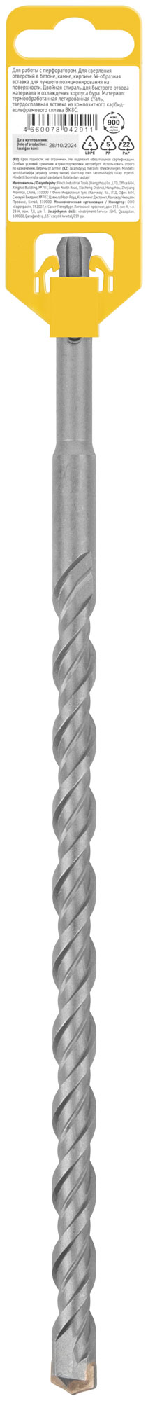 - SDS-PLUS хвостовик обеспечивает надежную фиксацию в перфораторе, что снижает вибрации и увеличивает комфорт работы.