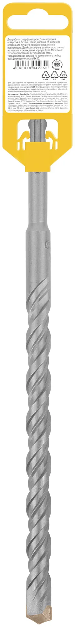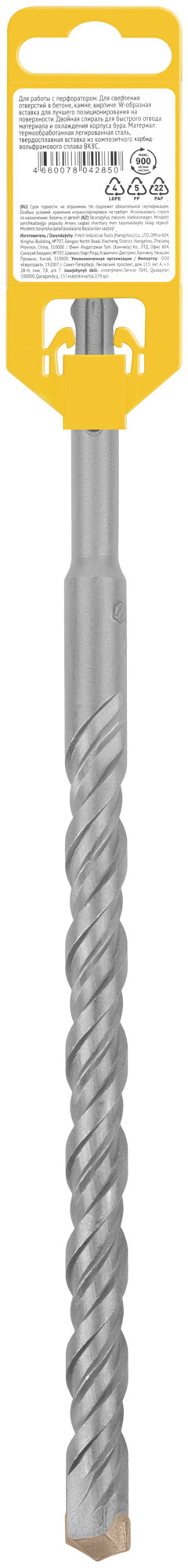 Преимущества бура включают в себя его износостойкость и способность справляться с самыми сложными материалами, такими как бетон и кирпич. Он создан для использования в перфораторах и подходит для профессионального применения.