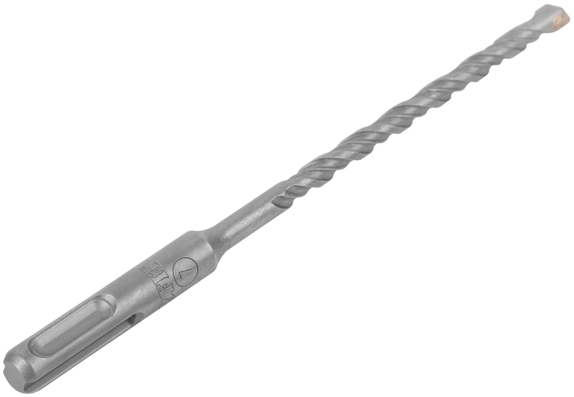 Бур оснащен SDS-PLUS хвостовиком, что обеспечивает быструю и надежную фиксацию в перфораторе. Основная особенность — W-образная вставка с добавлением 8% кобальта, которая обеспечивает легкое позиционирование и повышенную износостойкость.