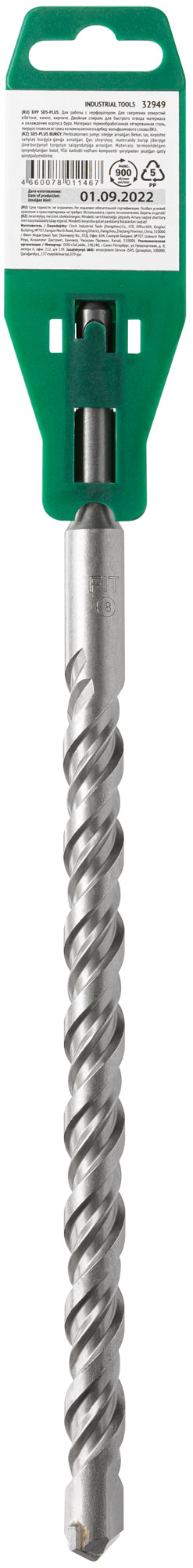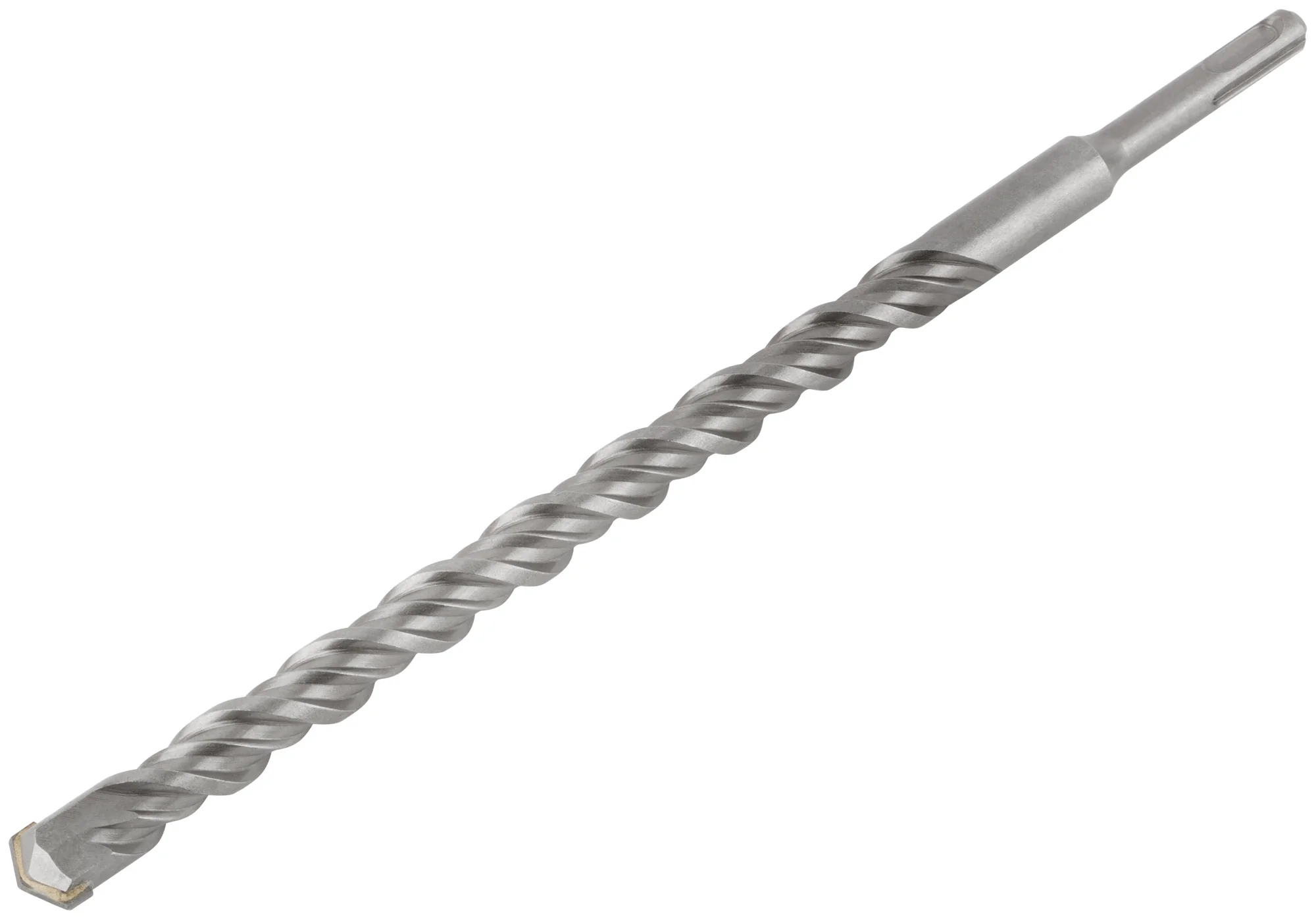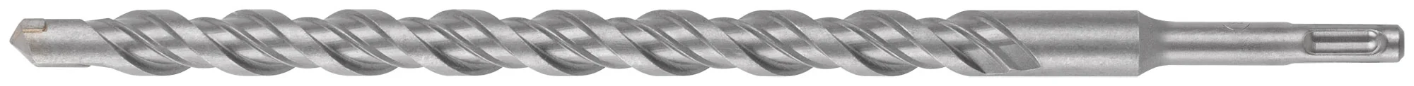 Бур оснащен хвостовиком SDS-PLUS, что обеспечивает надежную фиксацию в перфораторе и минимизирует вибрацию во время работы. Двойная резьба позволяет бурить более эффективно, снижая нагрузку на инструмент.