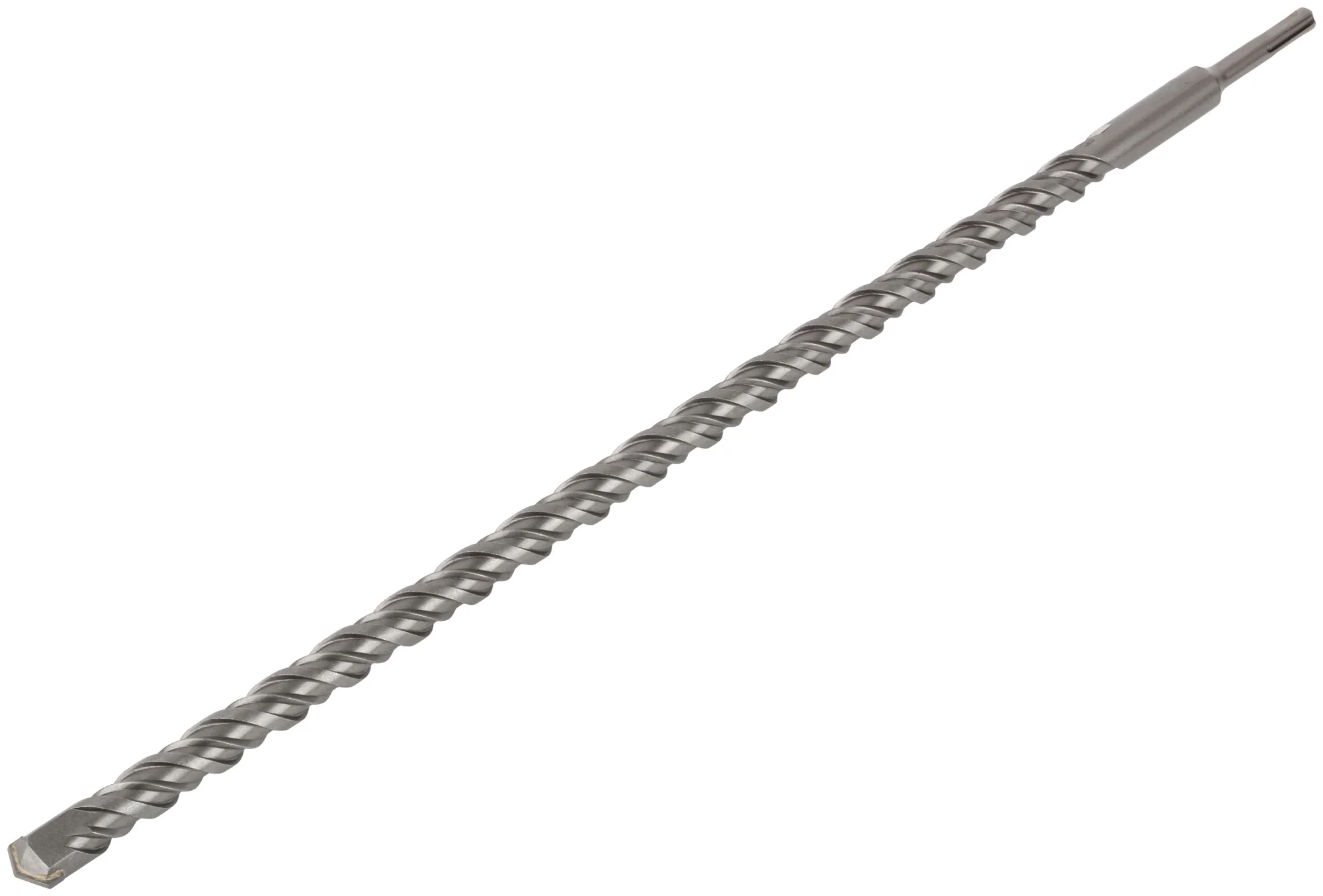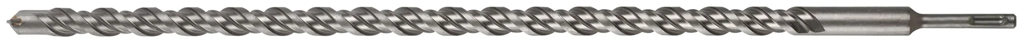 Бур оснащен двойной резьбой, что улучшает его способность быстрого сверления и уменьшает вибрации. Его длина 600 мм позволяет добраться до труднодоступных мест, что особенно важно при работе с толстыми бетонными стенами.