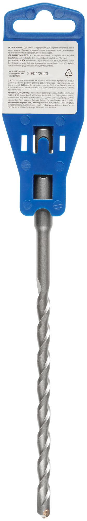 Бур по бетону FIT IT выполнен из инструментальной стали с твердосплавной вставкой, что гарантирует длительный срок службы и стойкость к износу. Пластиковый подвес обеспечивает удобное хранение и транспортировку.