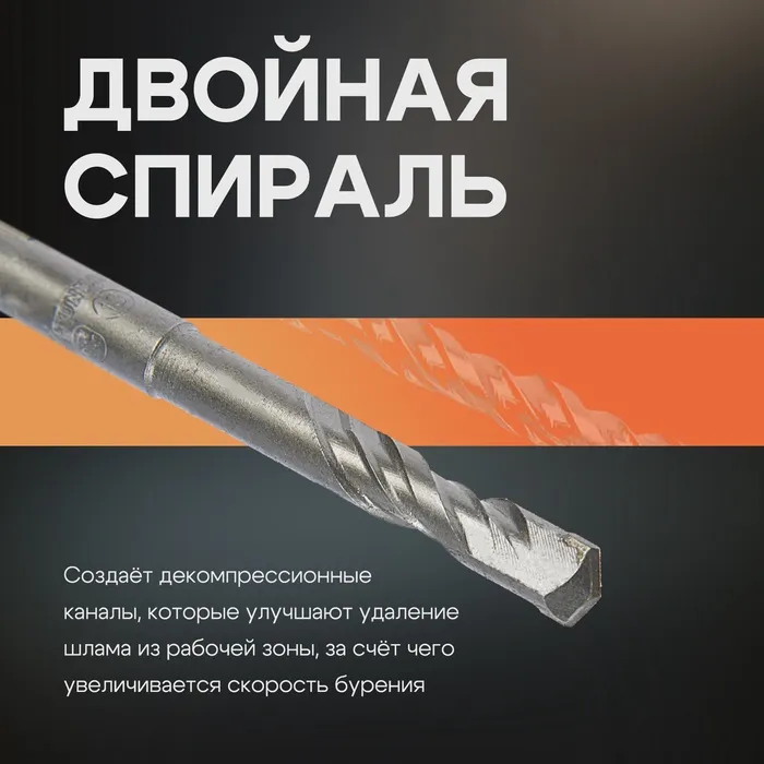 Бур по бетону ТУНДРА, двойная спираль, SDS-plus, 10 х 110 мм — Характеристики