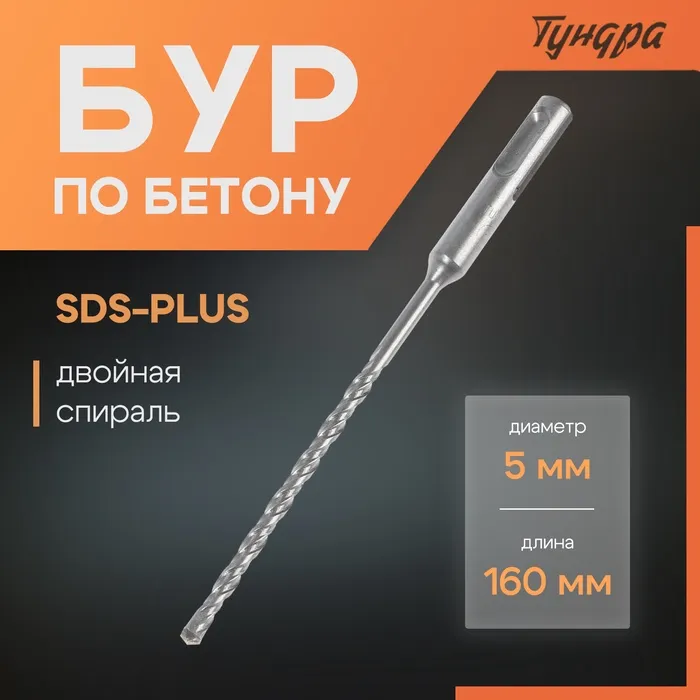 Бур по бетону ТУНДРА, двойная спираль, SDS-plus, 12×110 мм — Характеристики