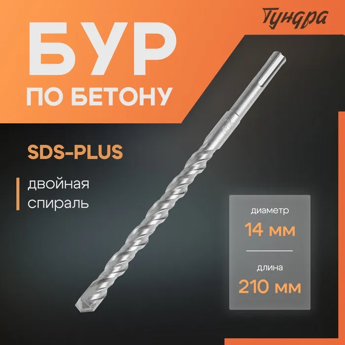 Бур по бетону ТУНДРА предназначен для совместных работ с перфоратором с системой крепления SDS-plus.