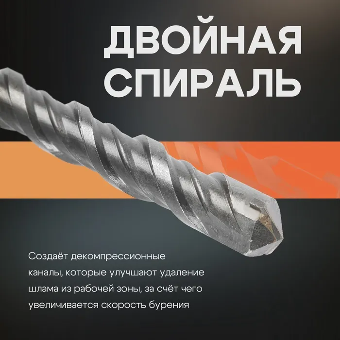 Бур по бетону ТУНДРА, двойная спираль, SDS-plus, 28 х 800 мм — Характеристики
