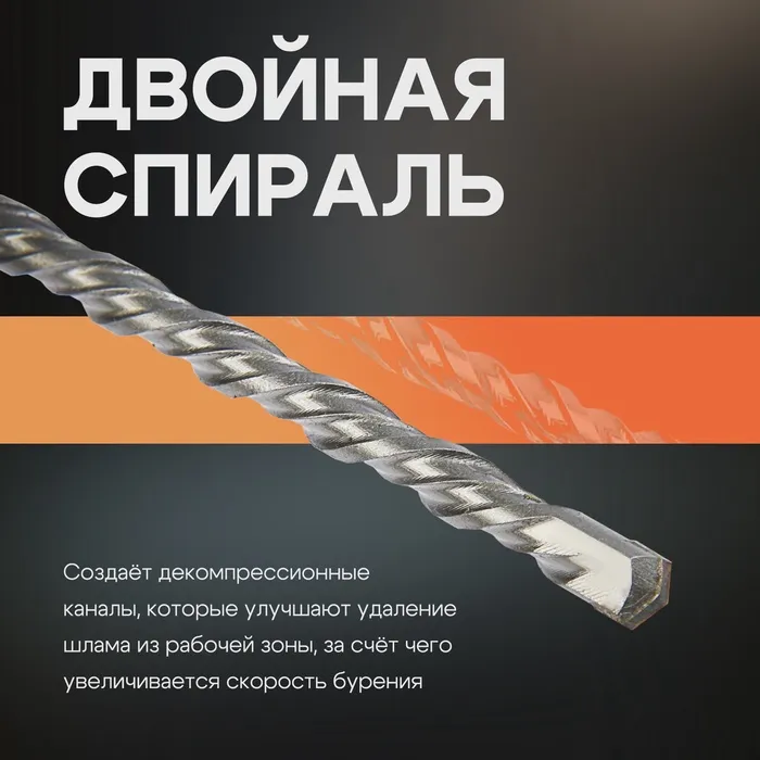 Бур по бетону ТУНДРА, двойная спираль, SDS-plus, 6 х 160 мм — Характеристики