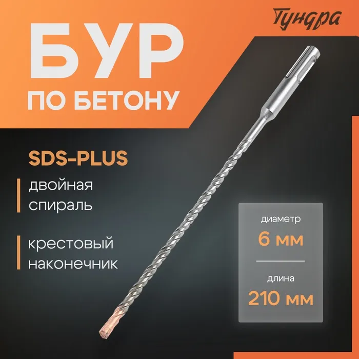 Бур ТУНДРА предназначен для работ с перфоратором с системой крепления SDS-plus.