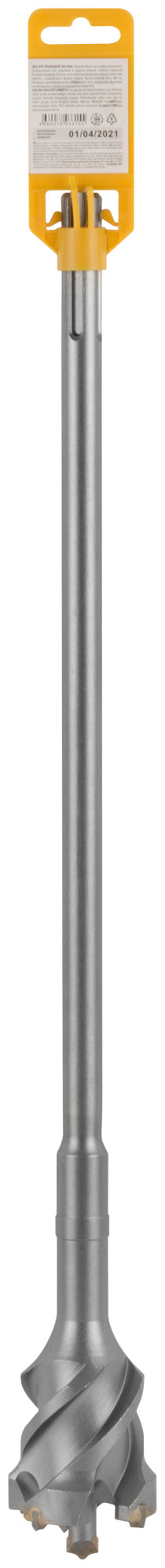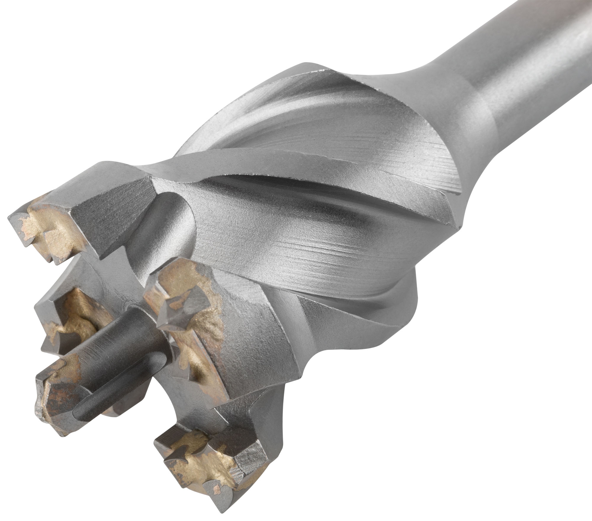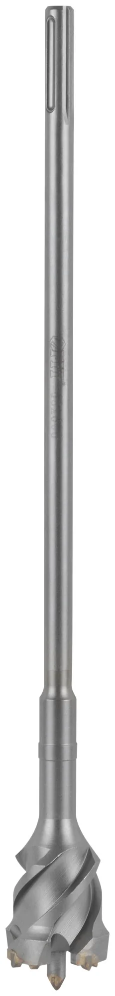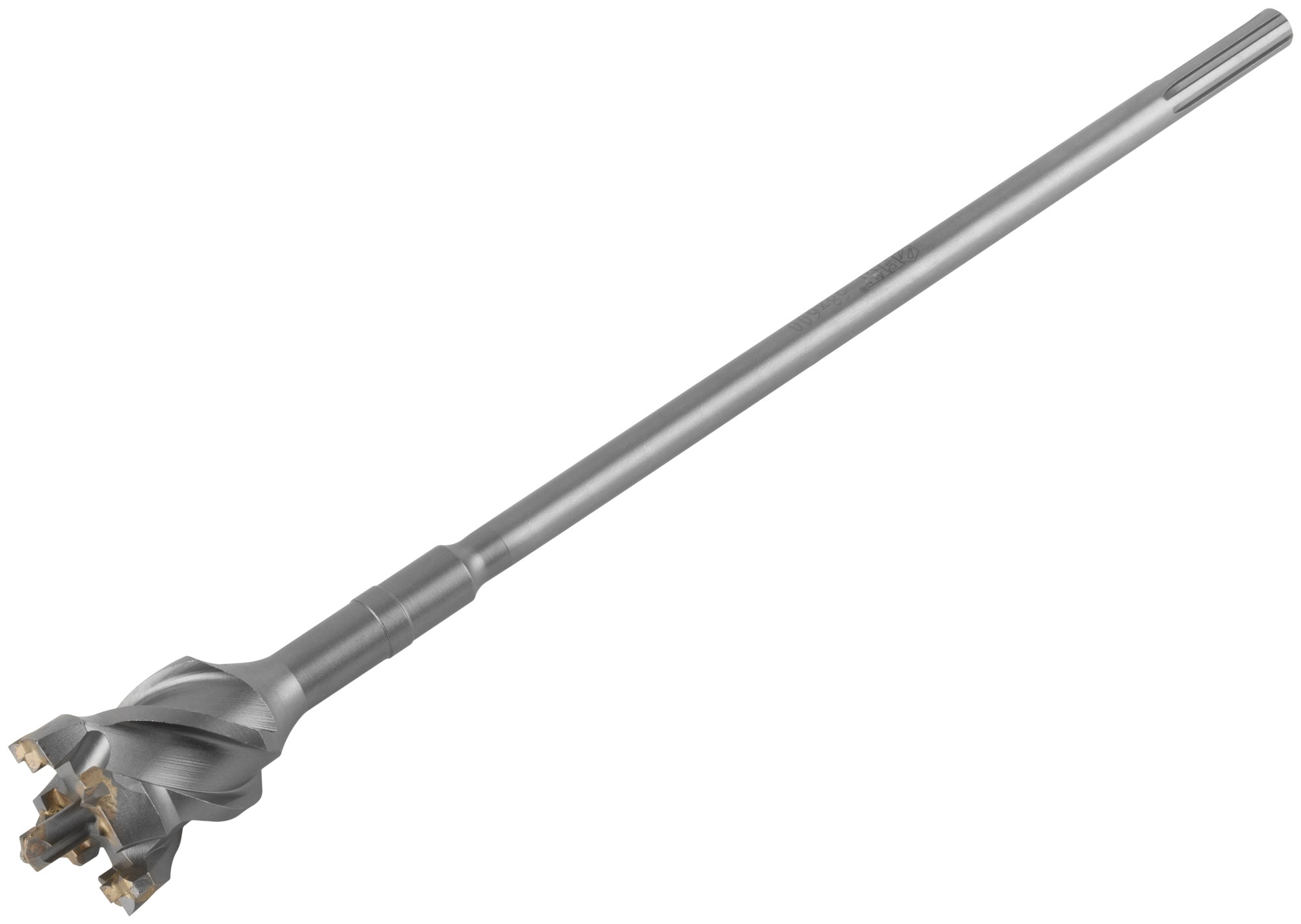 Бур оснащен хвостовиком SDS-MAX, что обеспечивает надежное крепление в перфораторе и высокую эффективность работы. Материал изготовления — термообработанная легированная инструментальная сталь 40 Cr, а твердосплавные резцы выполнены из карбида вольфрама ВК8С, что гарантирует износостойкость и долговечность.