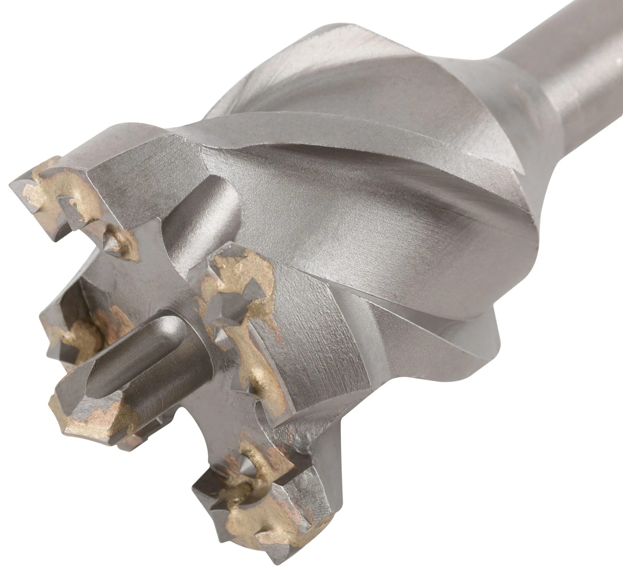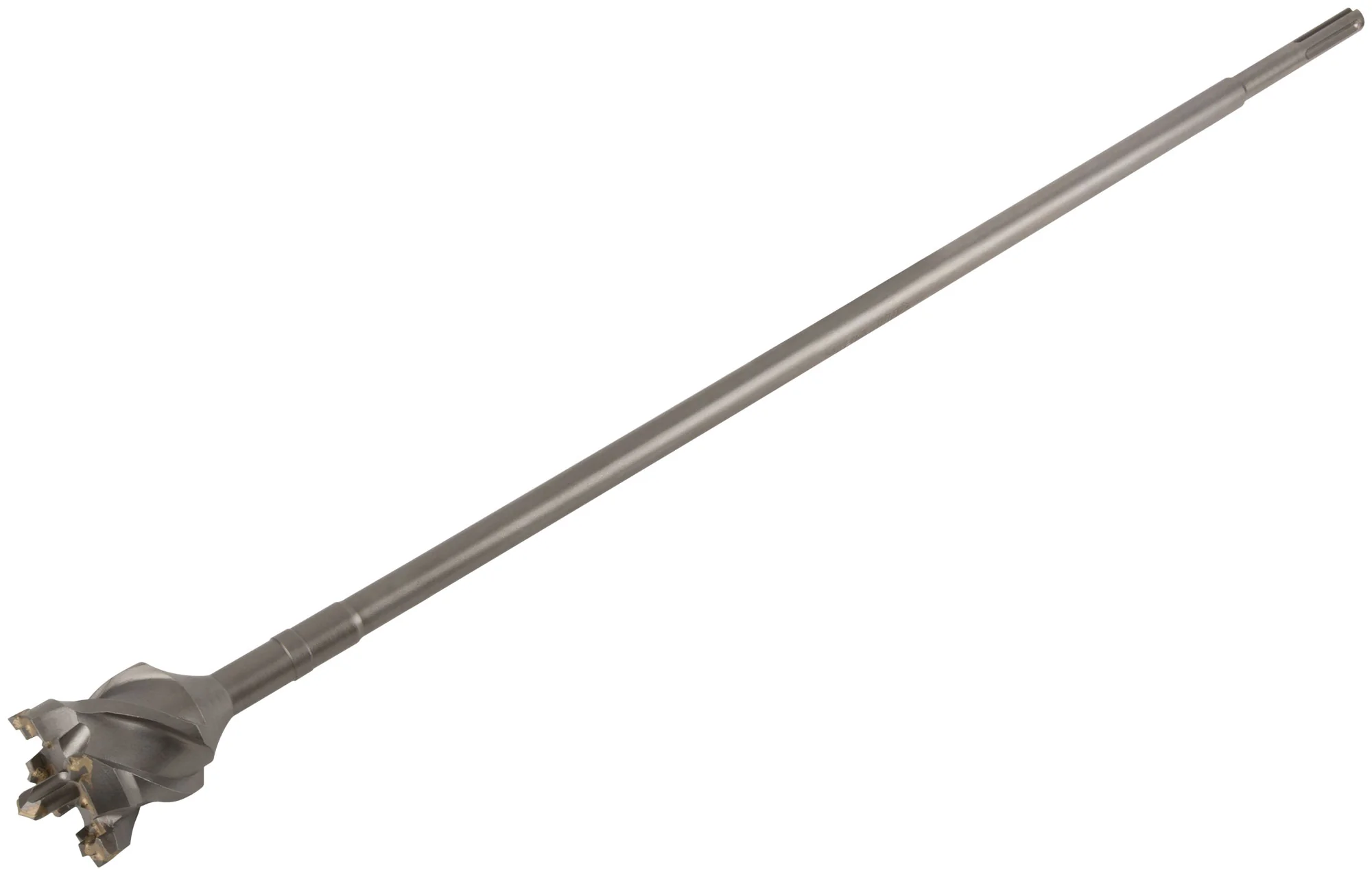Бур оснащен хвостовиком SDS-MAX, что обеспечивает надежное крепление и минимальные вибрации при работе. Изготовлен из термообработанной легированной инструментальной стали 40 Cr с твердосплавными резцами из карбида вольфрама ВК8С, что гарантирует долгий срок службы и устойчивость к износу.