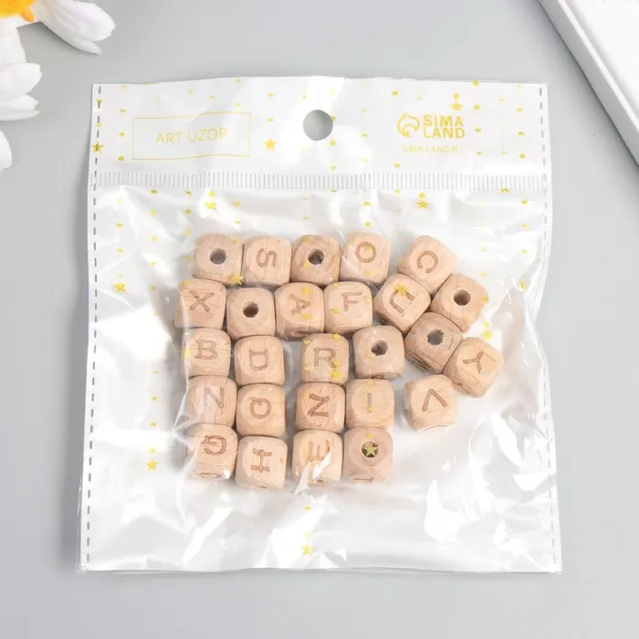 Бусина дерево для творчества «Кубики. Английский алфавит», 1.4 см — Характеристики