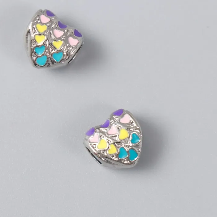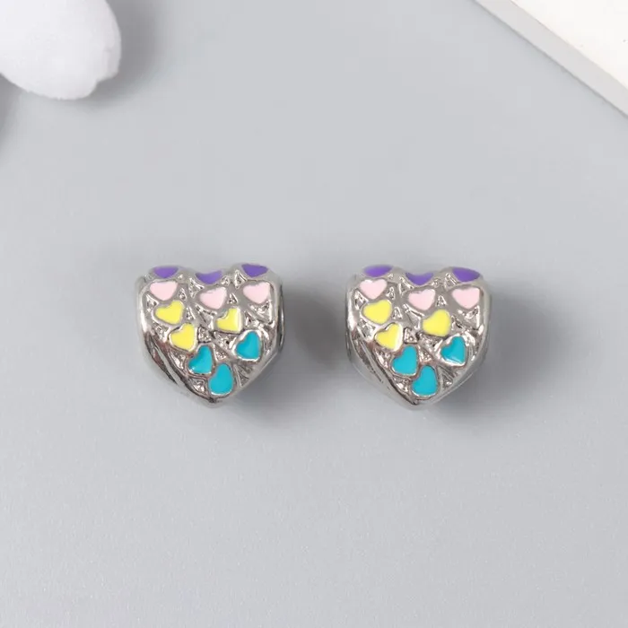 Бусина для рукоделия и плетения «Арт Узор. Сердце с сердечками», металл, серебро, эмаль 1.1 см — Характеристики