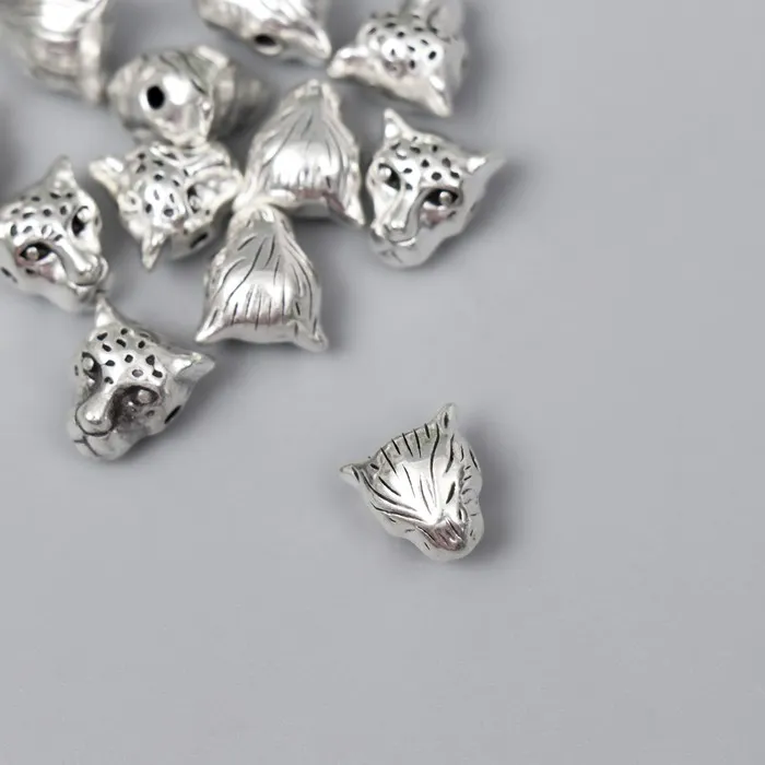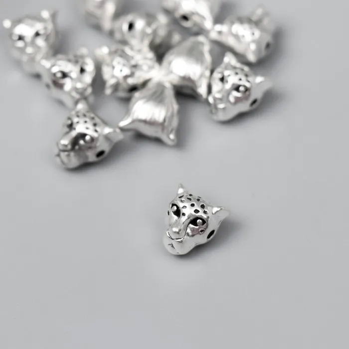Бусина для творчества металл «Ягуар», серебро, 1×0.9 см
