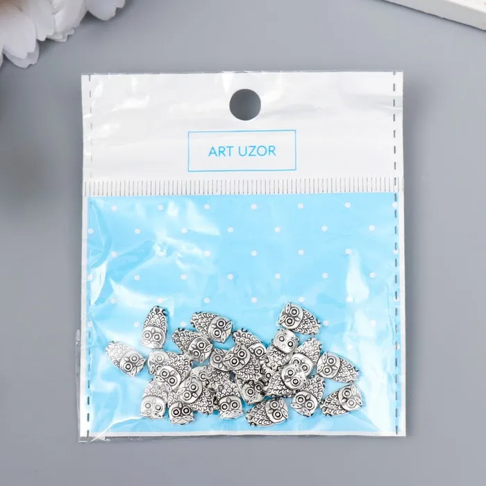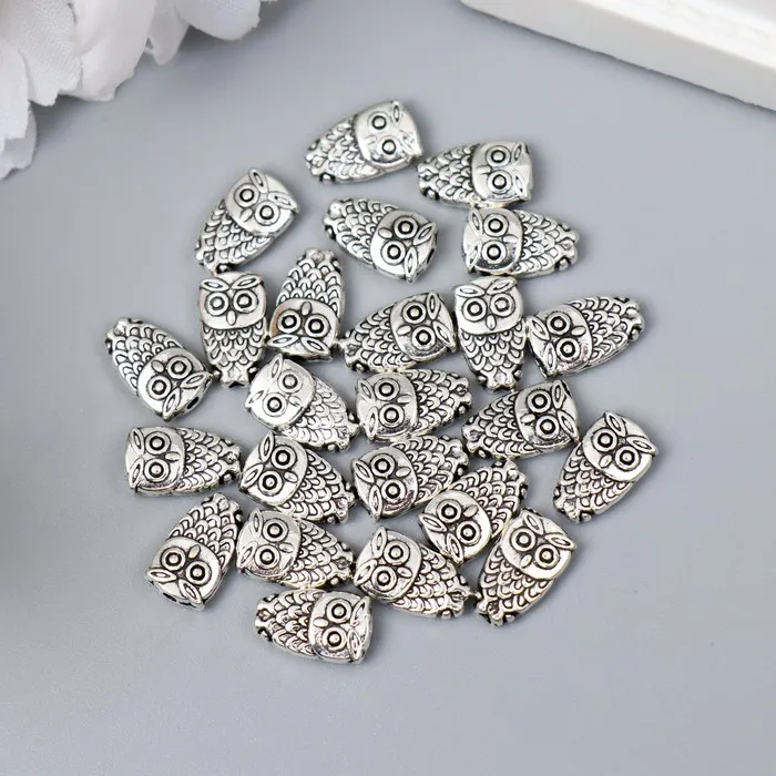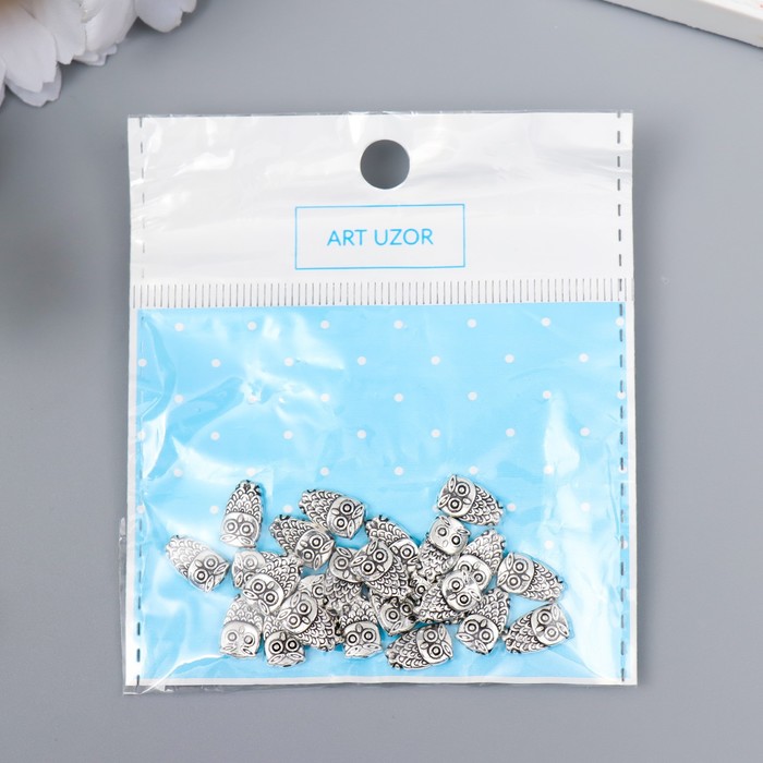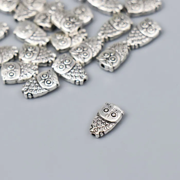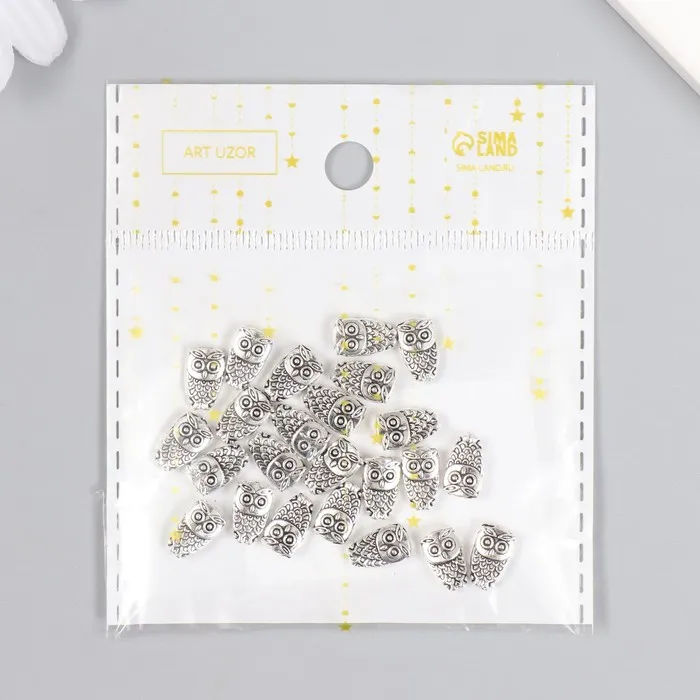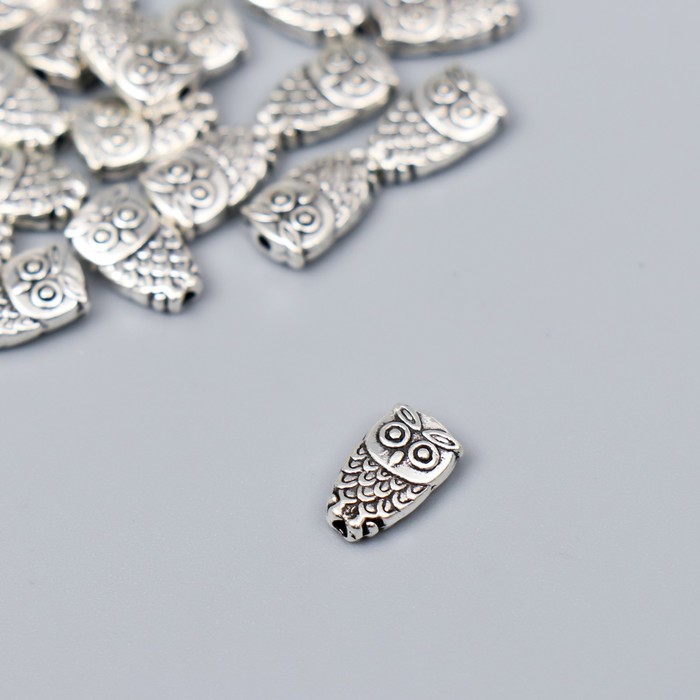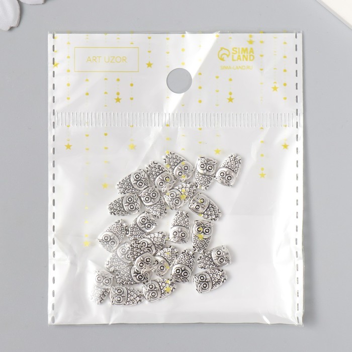 Бусина для творчества металл «Маленький филин» серебро, набор 24 шт. 1.1×0.7 см — Характеристики
