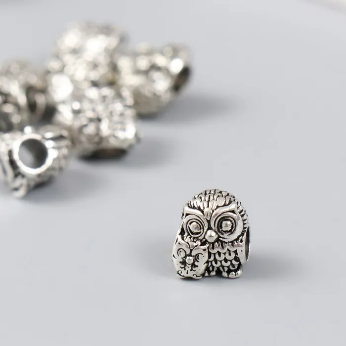 Бусина для творчества металл «Совушка с совёнком», серебро 1.1 см — Характеристики