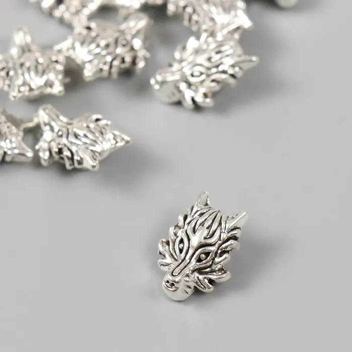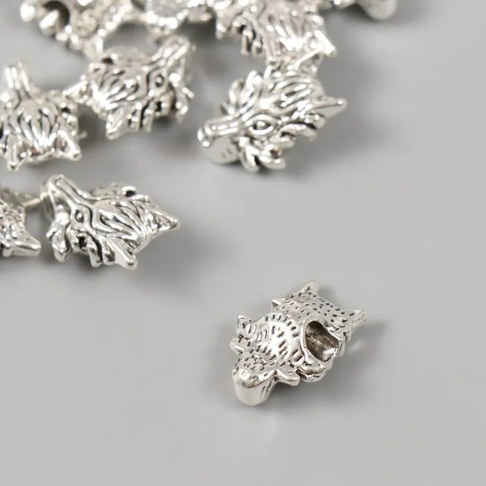 Бусина для творчества металл «Волк», серебро 1.3×1.8 см