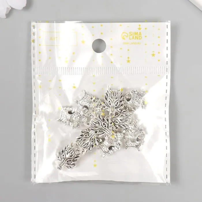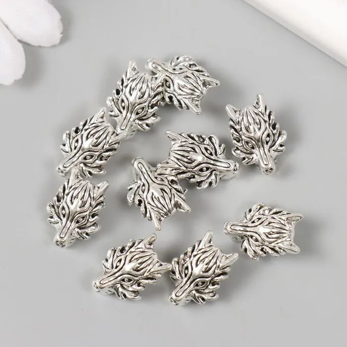 Бусина для творчества металл «Волк», серебро 1.3×1.8 см — Характеристики