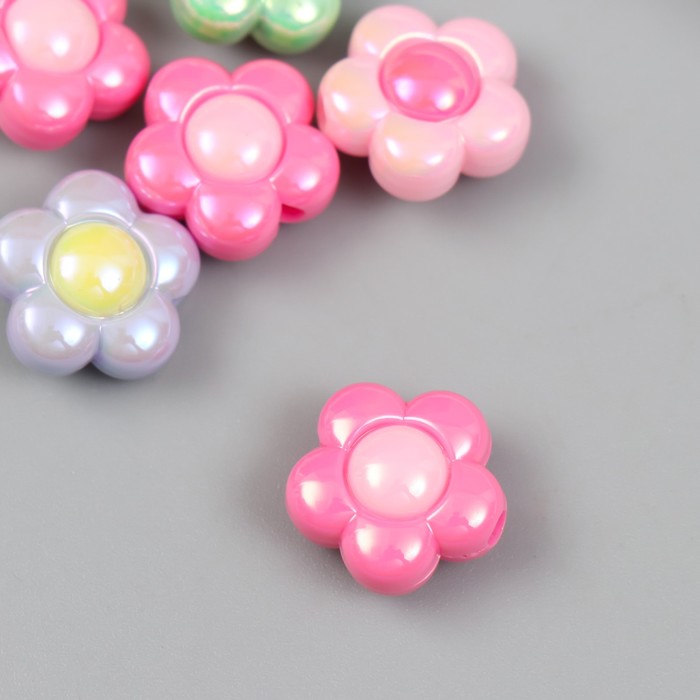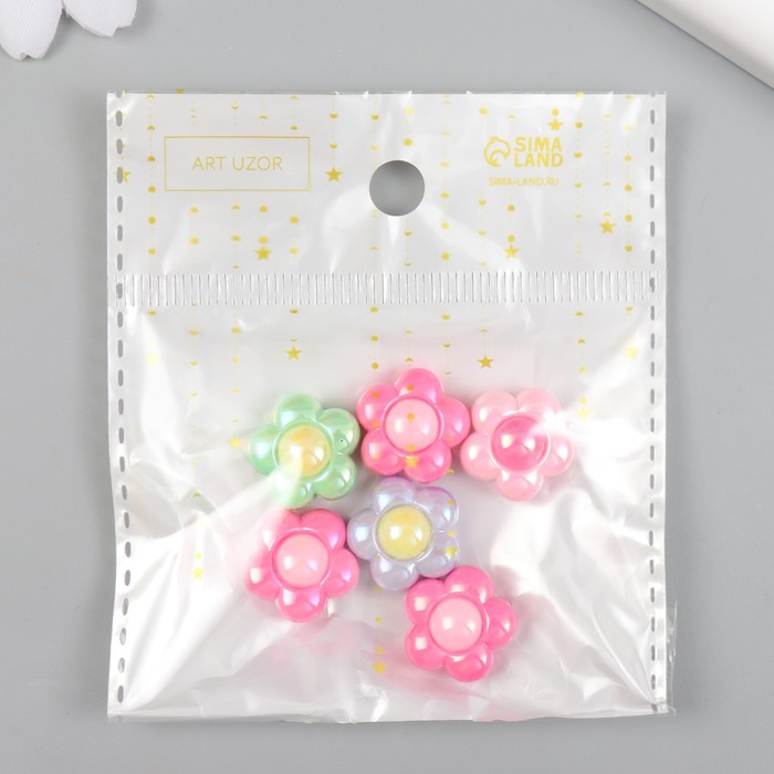 Бусина для творчества пластик «Цветочек», цветная с перламутром, 1×1.6×1.6 см, МИКС, набор 6 шт. — Характеристики