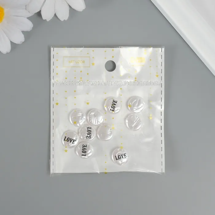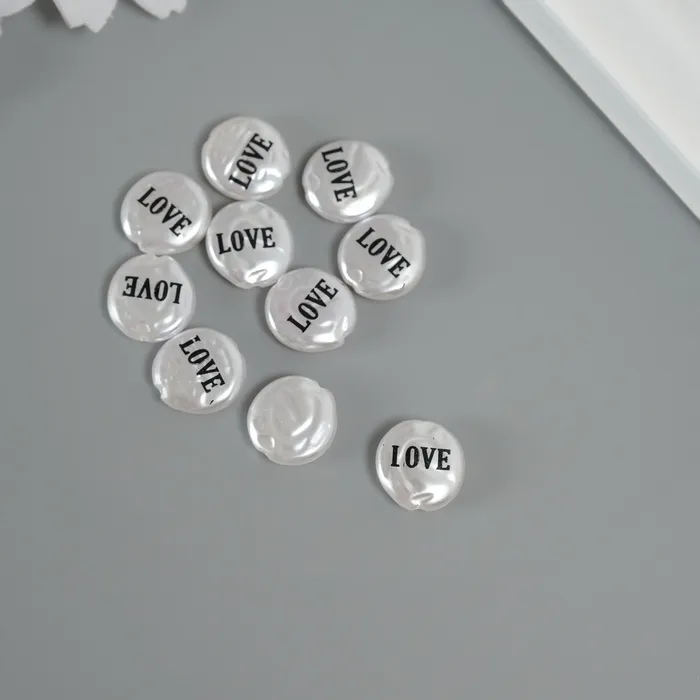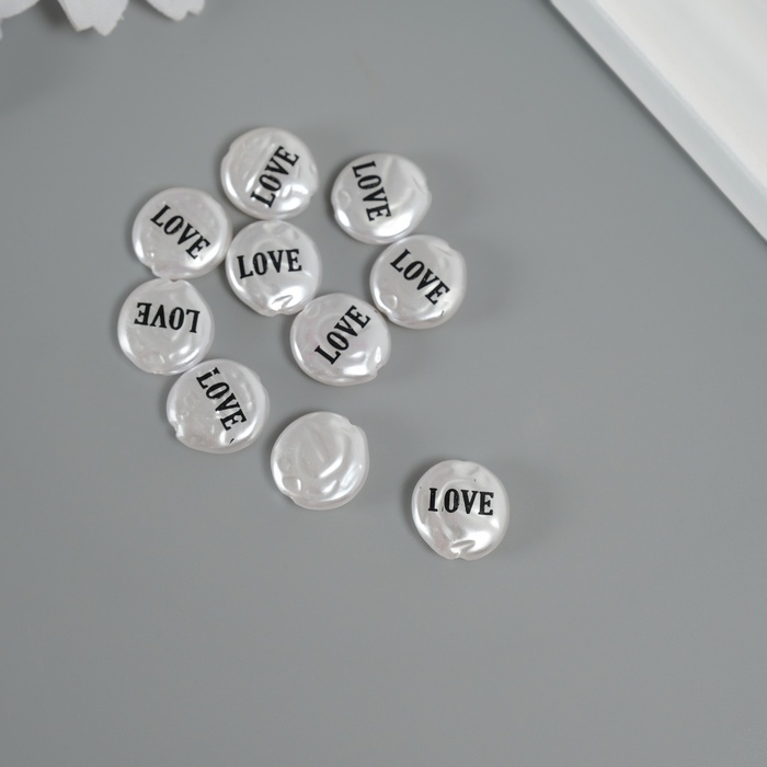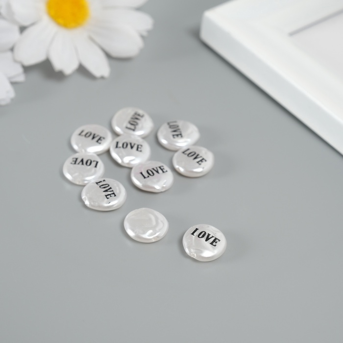 Бусина для творчества пластик «Жемчужный плоский круг - любовь», набор 10 шт., 0.3×1.2×1.2 см — Характеристики