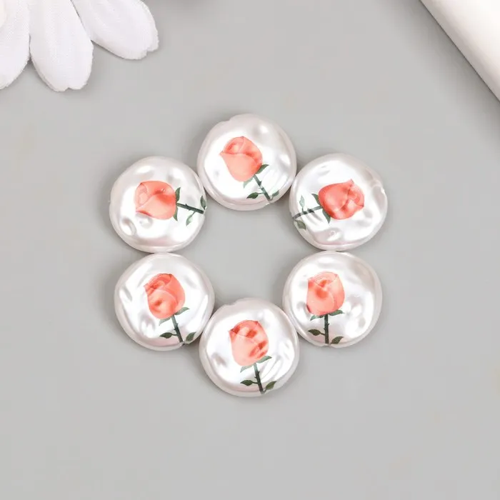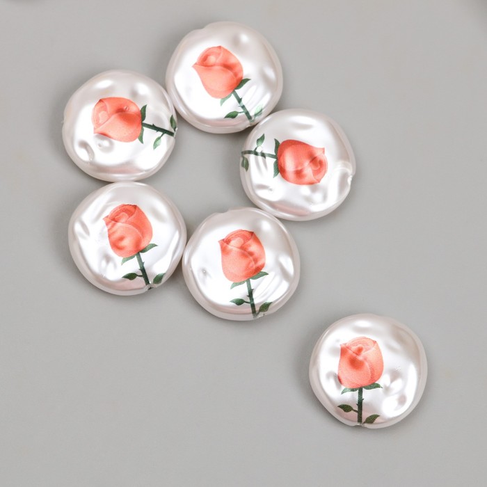 Бусина для творчества пластик «Жемчужный плоский круг с розой», 0.5×1.6×1.6 см — Характеристики