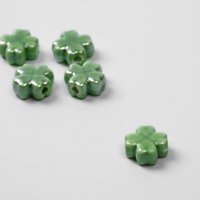 Бусина керамическая «Клевер» четырёхлистный, 1,2×1,2×0,5 см, (набор 5 шт.), цвет зелёный. Эти бусины в виде четырёхлистного клевера станут отличным выбором для создания украшений с удачными и символичными мотивами. Изготовленные из керамики, они имеют прочность и привлекательный внешний вид.