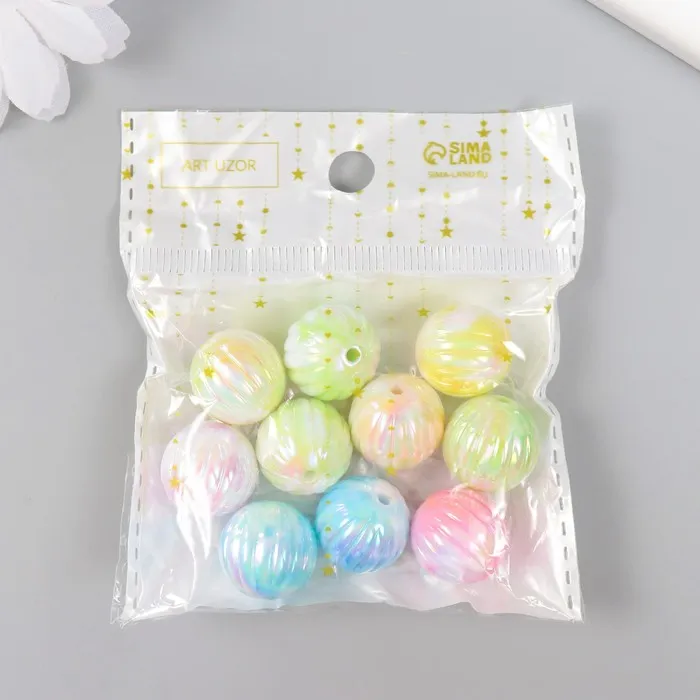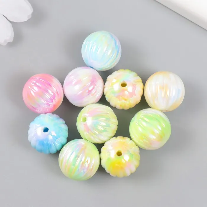Бусина пластик для творчества «Ребристый шарик. Разноцветный перламутр», 1.6×1.6×1.6 см, МИКС — Характеристики