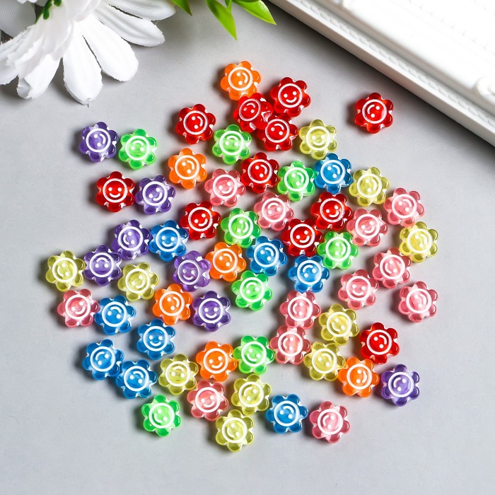 Бусина пластик "Летний бриз. Смайлик" глянец МИКС 2,2х2х0,9 см — Характеристики