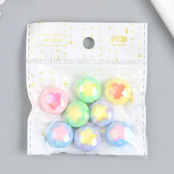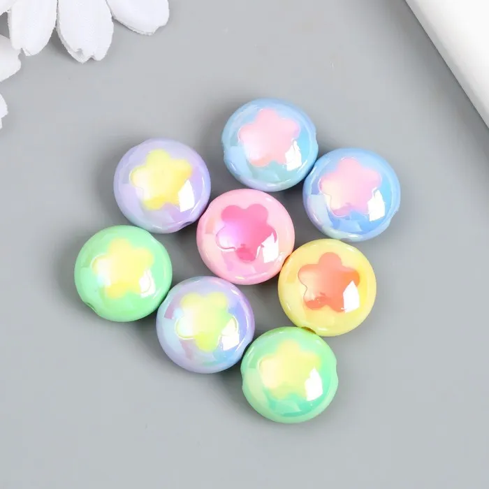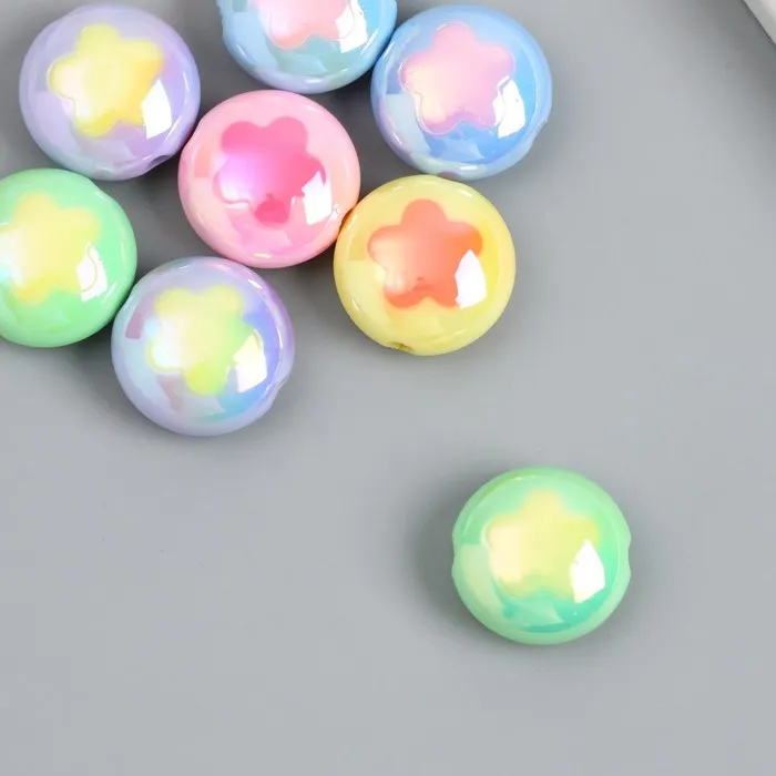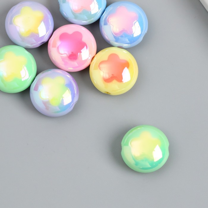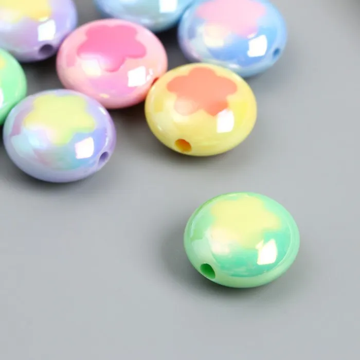 Бусина пластик «Плоский шарик. Цветочек», глянец перламутр, 1.7×1.7 см, МИКС — Характеристики