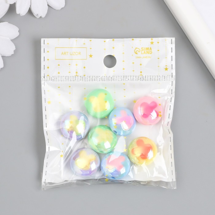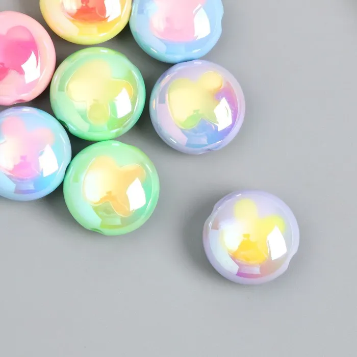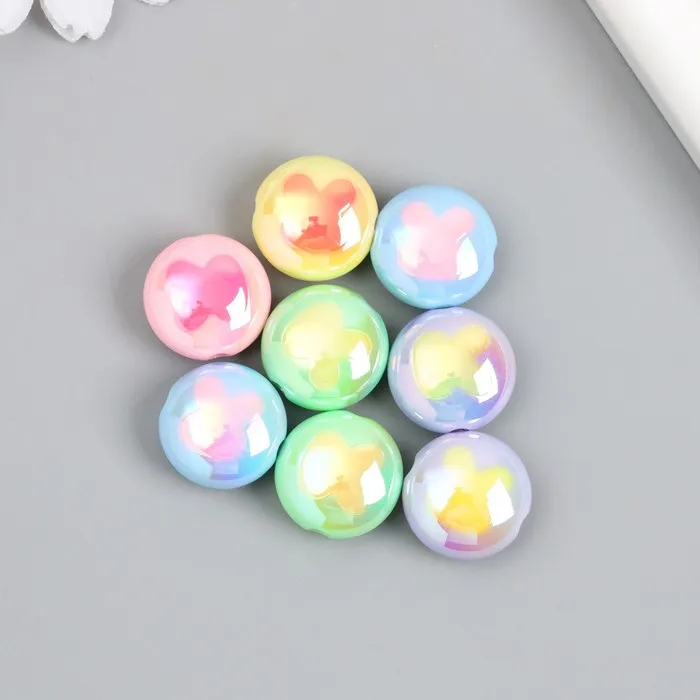 Бусина пластик "Плоский шарик. Зайчик" глянец перламутр МИКС 1,7х1,7 см — Характеристики