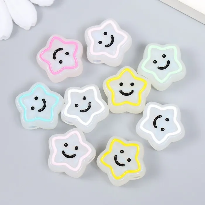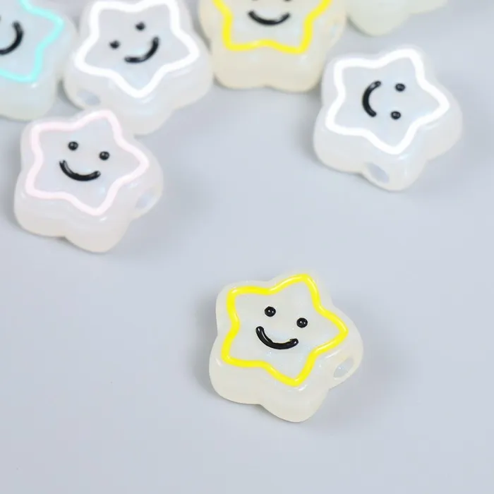 Бусина пластик «Весёлая звёздочка с контуром», фосфорная, 1.9×1.9×0.8 см, МИКС — Характеристики
