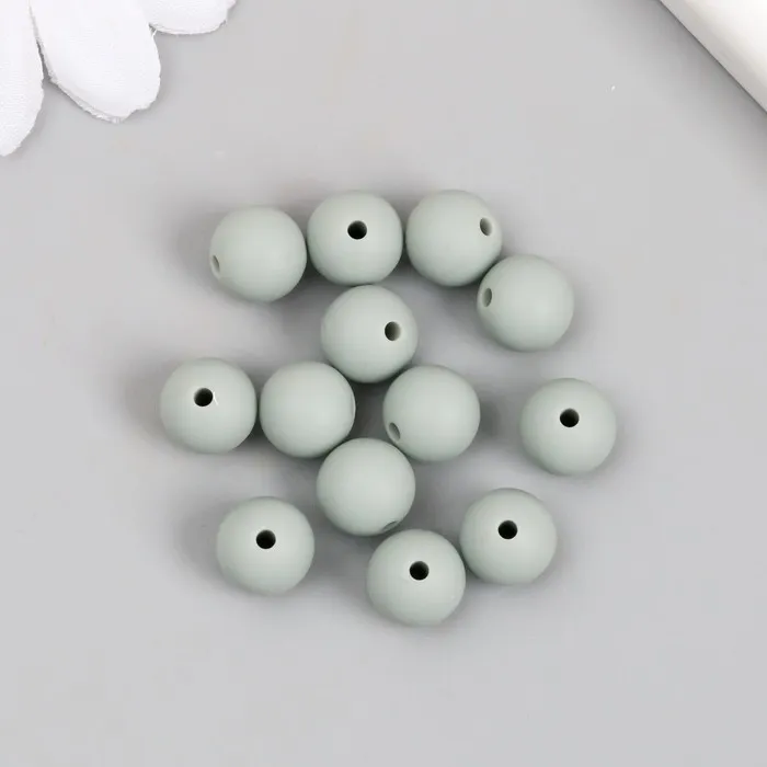 Бусина силикон «Круглая», светло-зелено-серая, d=0.9 см