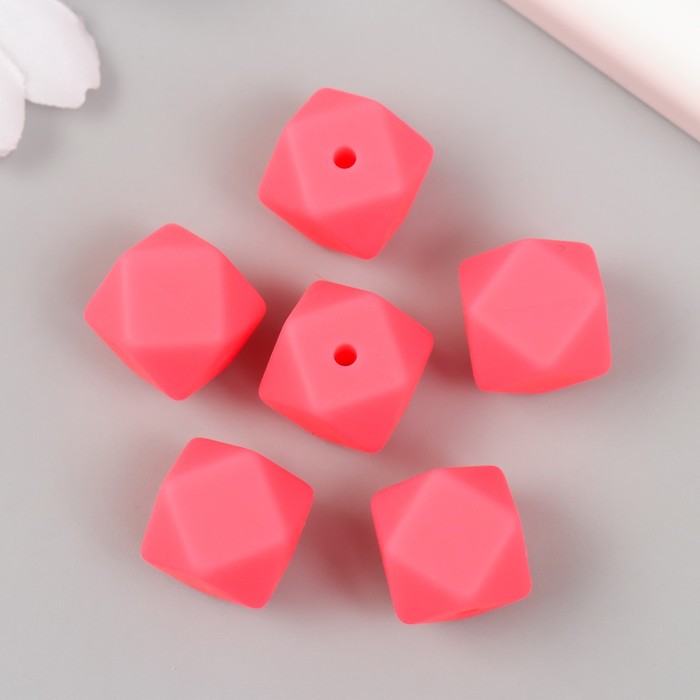 Бусина силикон «Многогранник», ярко-розовая, d=1.4 см