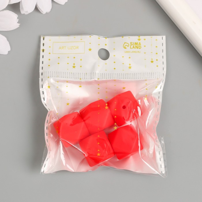 Бусина силикон «Многогранник», клубнично-красная, d=1.7 см
