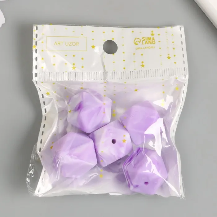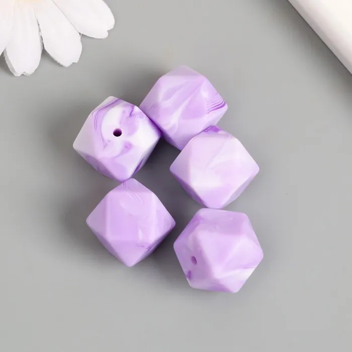 Бусина силикон «Многогранник», сиреневый нефрит, d=1.7 см