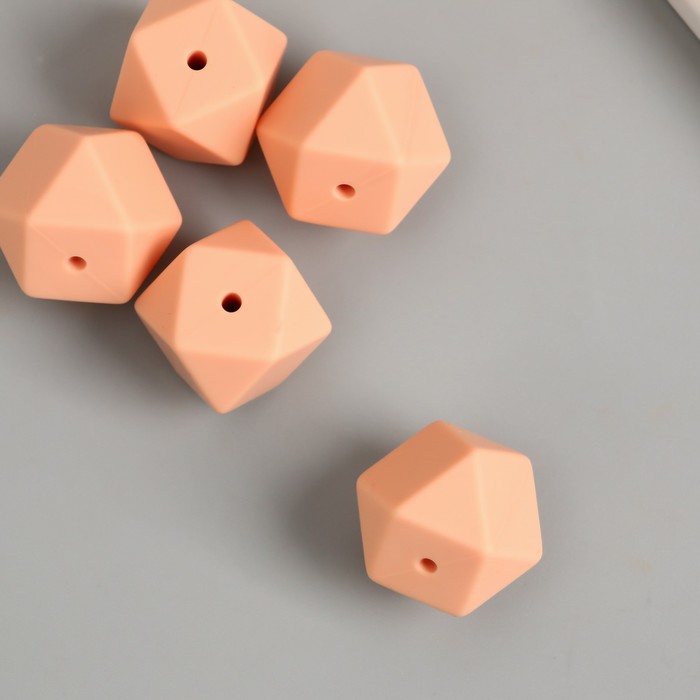 Бусина силикон «Многогранник», телесный розовый, d=1.7 см