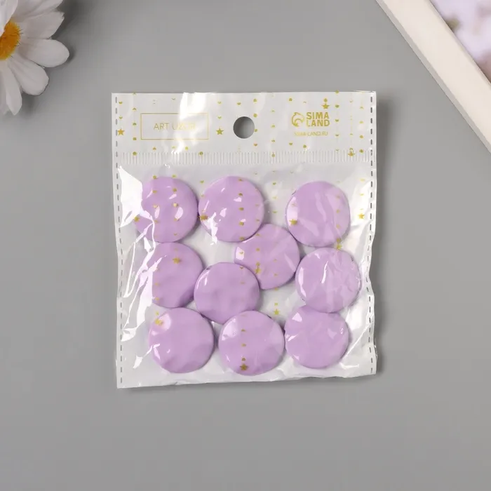 Бусины для творчества акрил «Плоский мятый круг», сирень 2.5×2.5×0.6 см — Характеристики