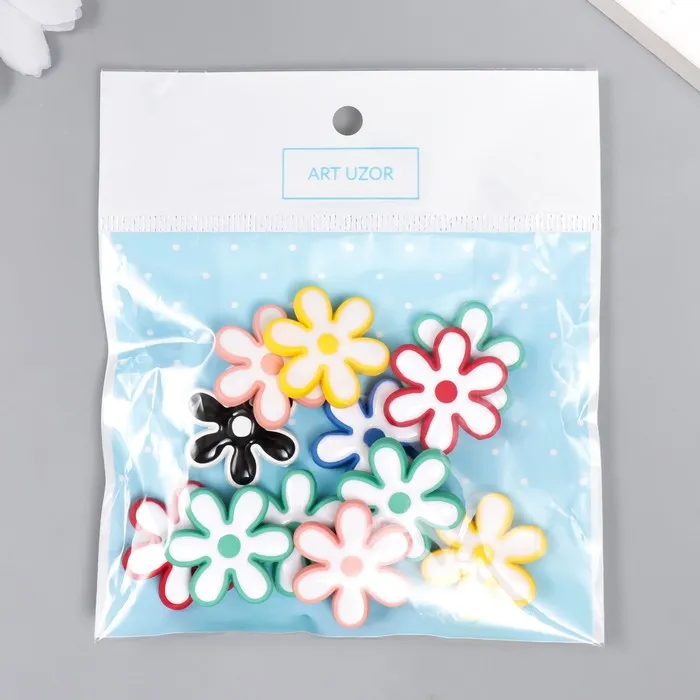 Бусины для творчества акрил «Ромашки», 0.4×2.3×2.3 см, МИКС — Характеристики