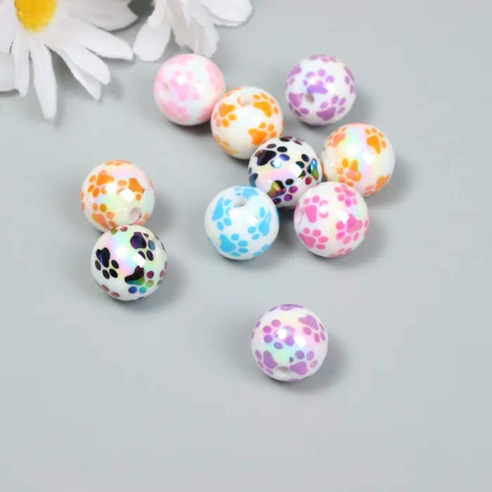 Бусины для творчества акрил «Следы лапок», 1.6×1.6×1.6 см, МИКС — Характеристики