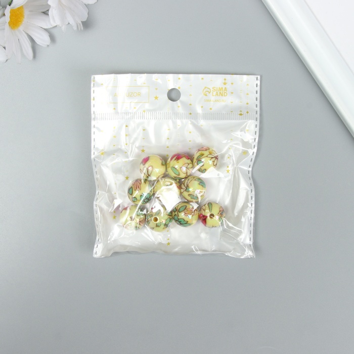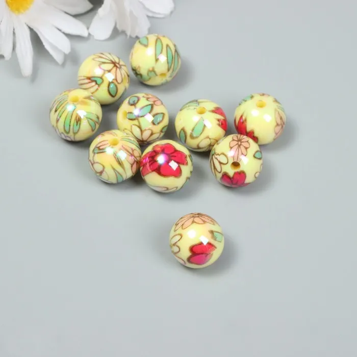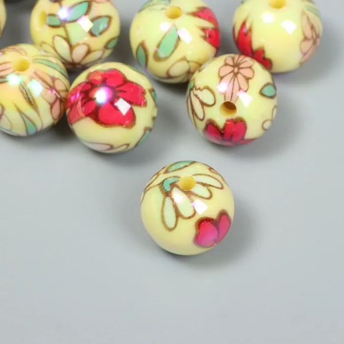 Бусины для творчества акрил «Цветочки на жёлтом», 1.6×1.6×1.6 см, МИКС — Характеристики