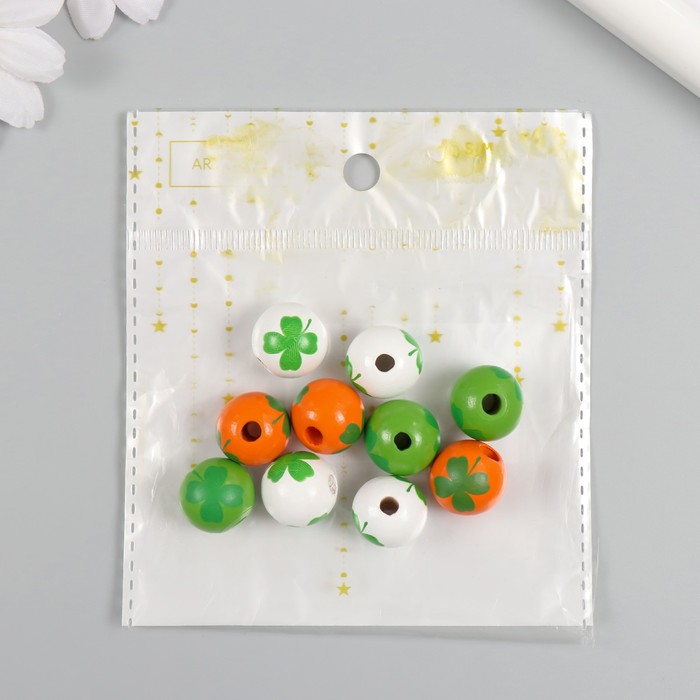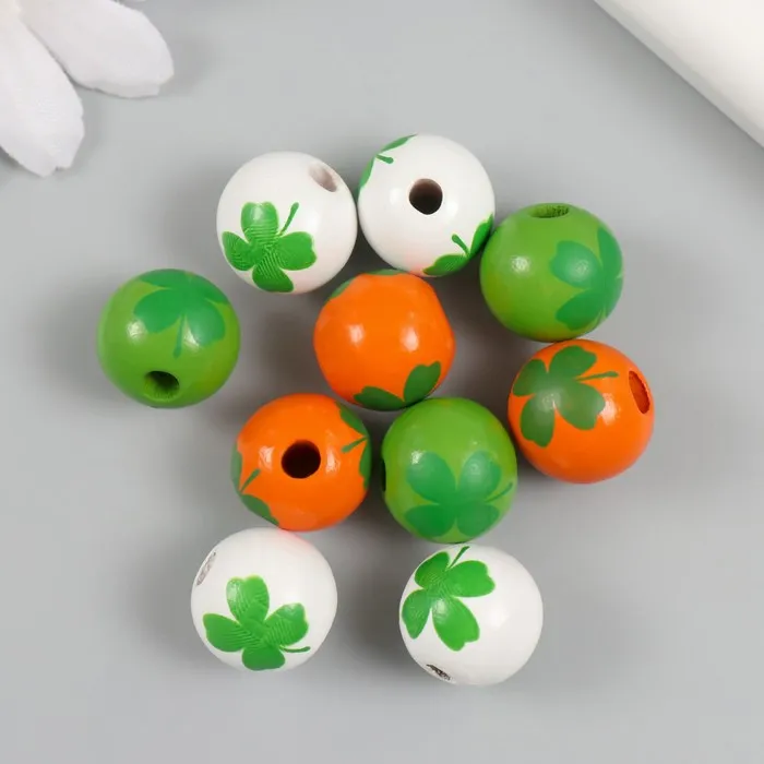 Бусины для творчества дерево «Клевер на шариках», набор 10 шт., d=1.6 см — Характеристики
