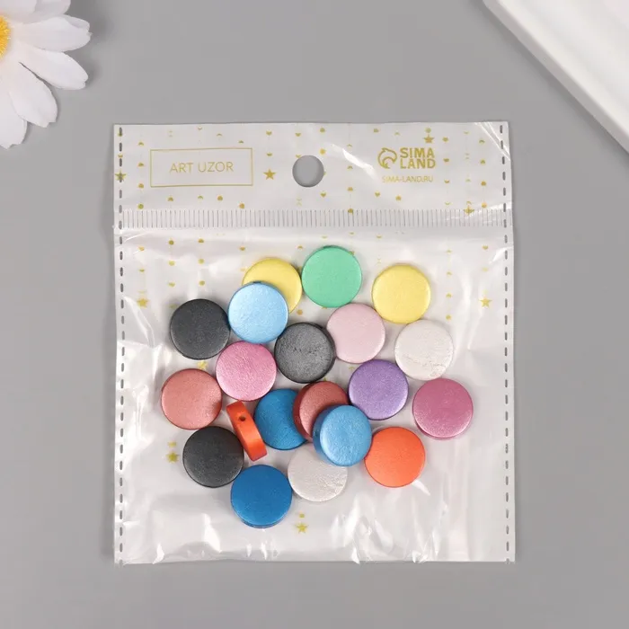 Бусины для творчества дерево «Металлик плоский», набор 20 шт., 1.5×1.5×0.5 см — Характеристики