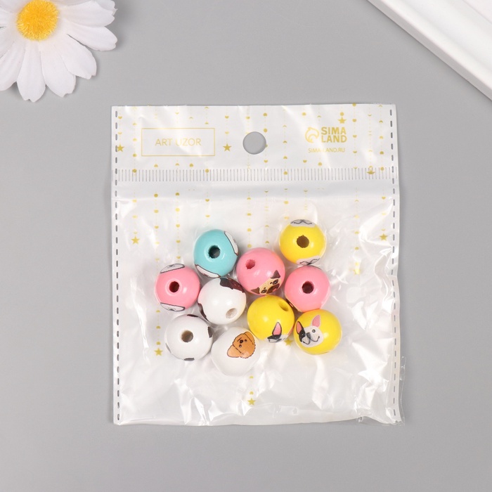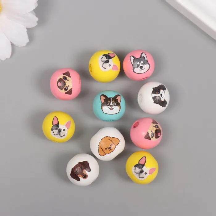 Бусины для творчества дерево «Пёсики», набор 10 шт., 1.6×1.6×1.6 см — Характеристики