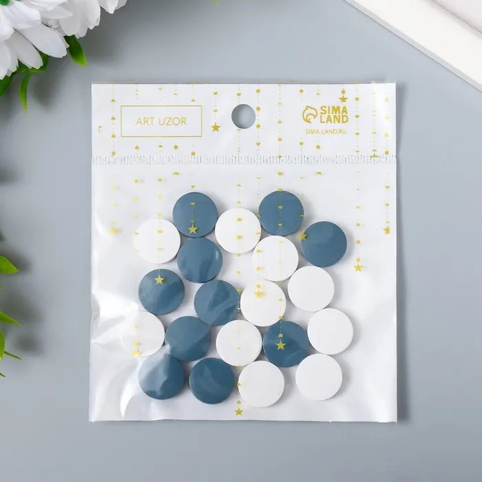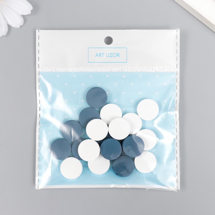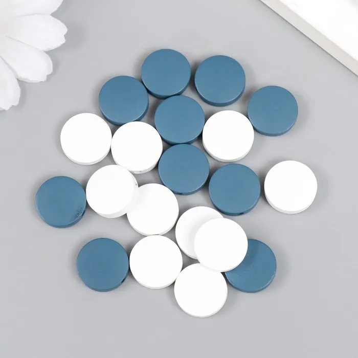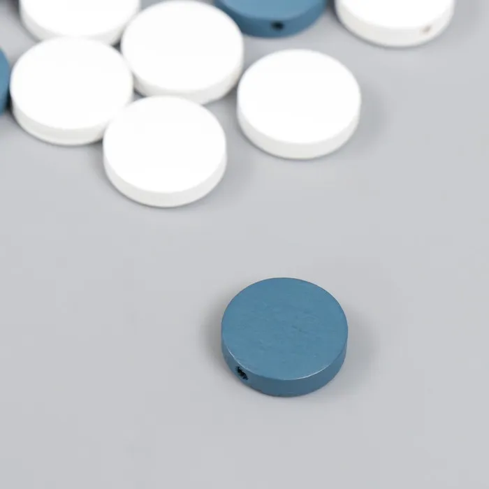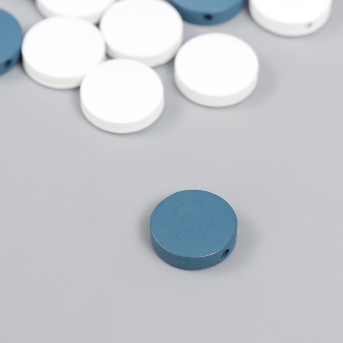 Бусины для творчества дерево «Плоский круг», набор 20 шт., белый, серо-синий 0.4×1.5×1.5 см — Характеристики