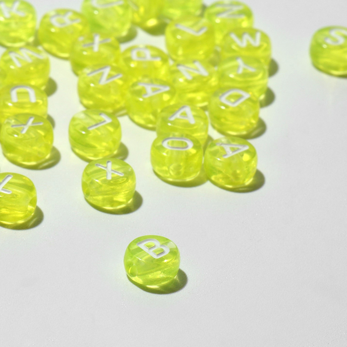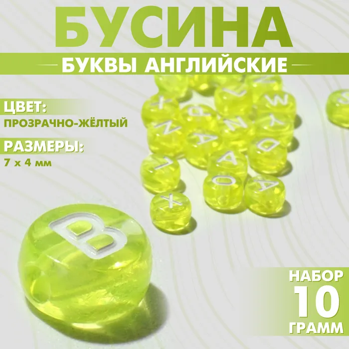 Бусины для творчества из акрила «Буквы английские», МИКС, 7×4 мм, набор 10 г, цвет прозрачно-жёлтый — Характеристики