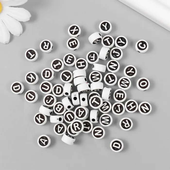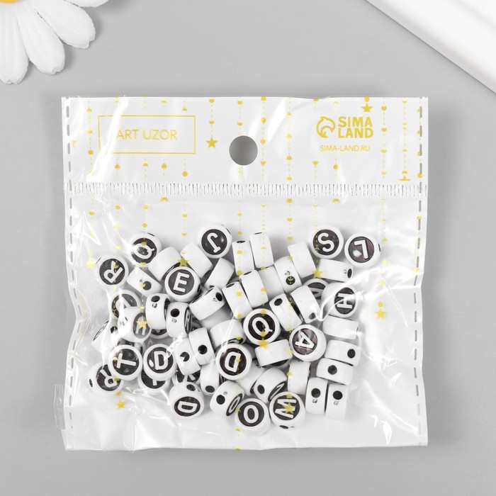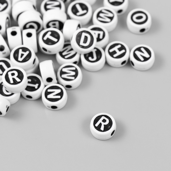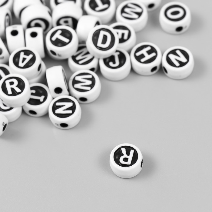 Бусины для творчества пластик «Англ.буквы в круге», белые на чёрном, набор 20 г, 0.6×1×1 см — Характеристики