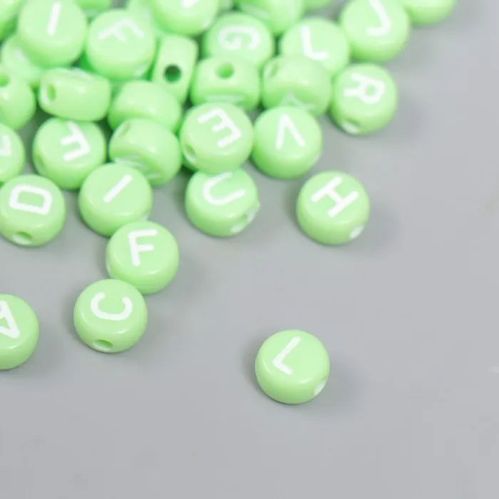 Бусины для творчества пластик «Английские буквы», зелёные, набор 20 г, 0.4×0.7×0.7 см — Характеристики