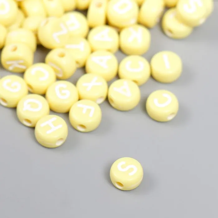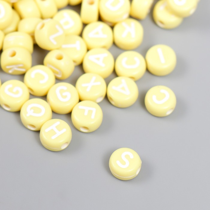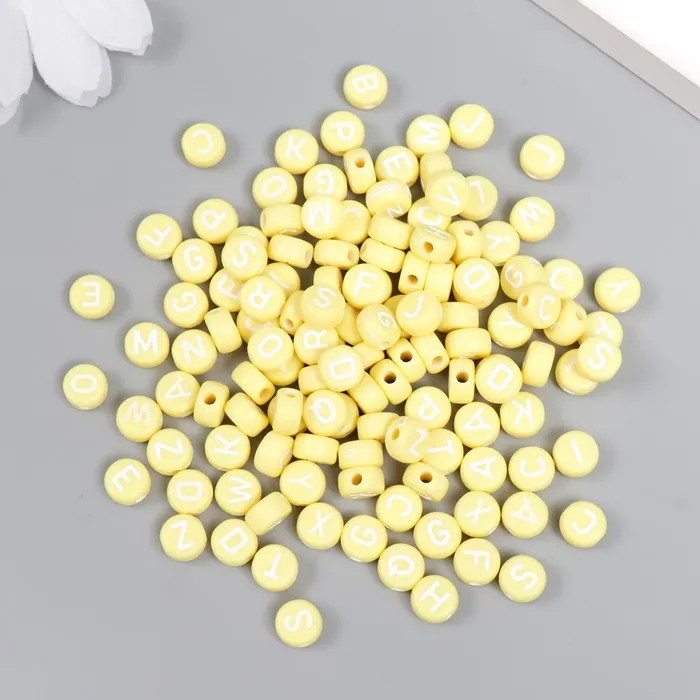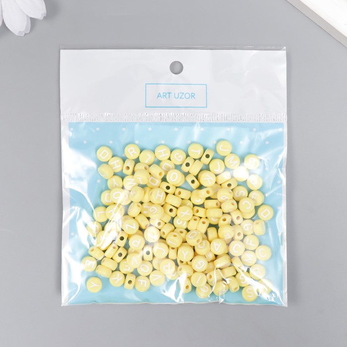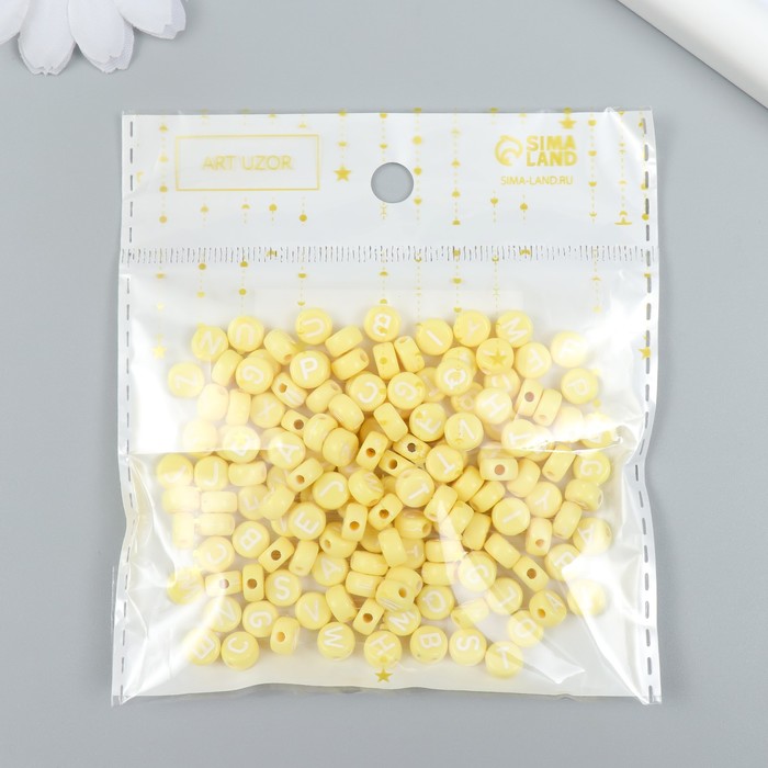 Бусины для творчества пластик «Английские буквы», жёлтые, набор 20 г, 0.4×0.7×0.7 см — Характеристики